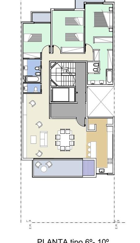 Sistema de construcción tradicional en estructura de hormigón armado, columnas, vigas, losas, escalera, y salas de máquinas según normas reglamentarias, utilizando hormigón elaborado y acero bajo normas IRAM.
