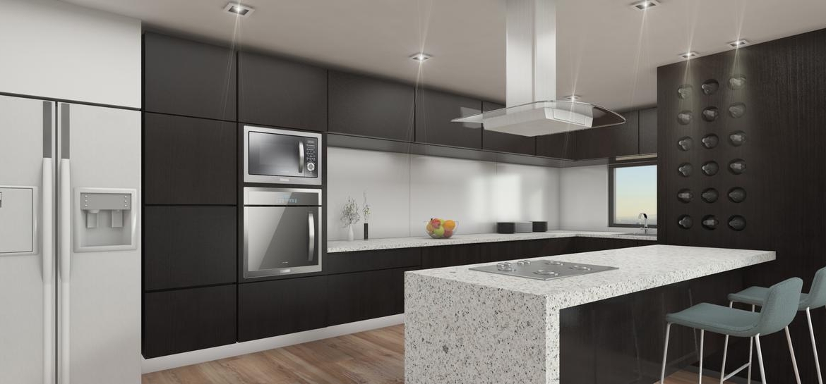 Muebles de cocina completos con alacenas, bajo mesadas y cajoneras, diseñados para aprovechar al máximo los espacios, artefacto de cocina de primera marca.