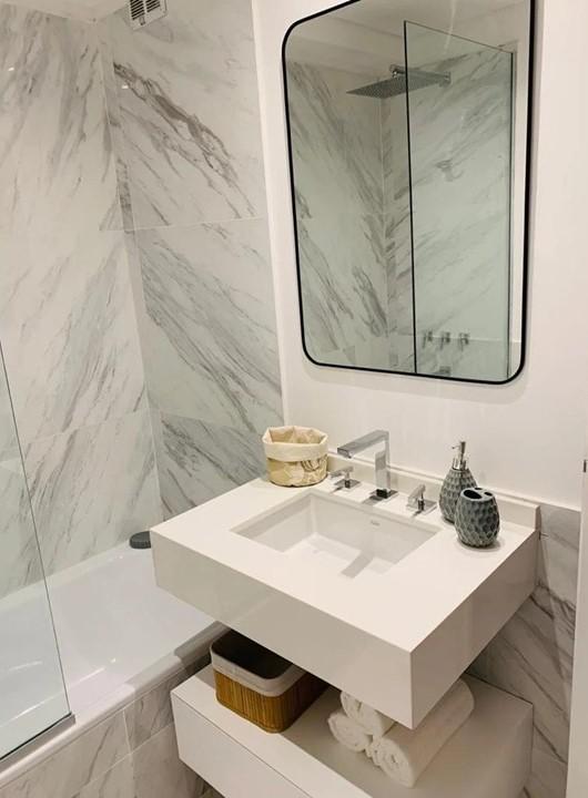Bachas de losa blanca de apoyar o embutir según el diseño a definir.