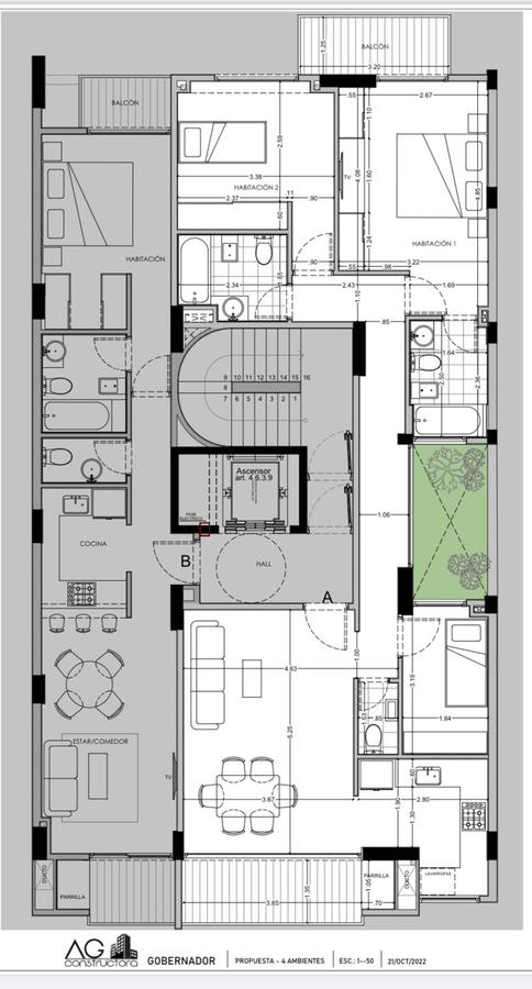 Sistema de construcción tradicional en estructura de hormigón armado, columnas, vigas, losas, escalera, y salas de máquinas según normas reglamentarias, utilizando hormigón elaborado y acero bajo normas IRAM.