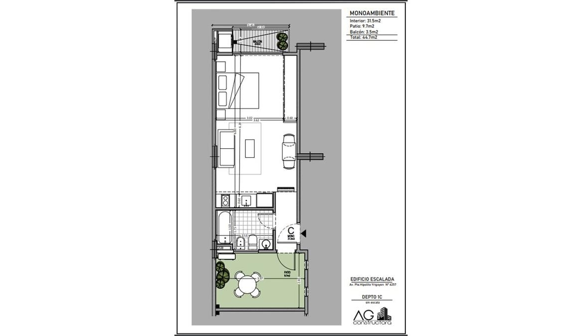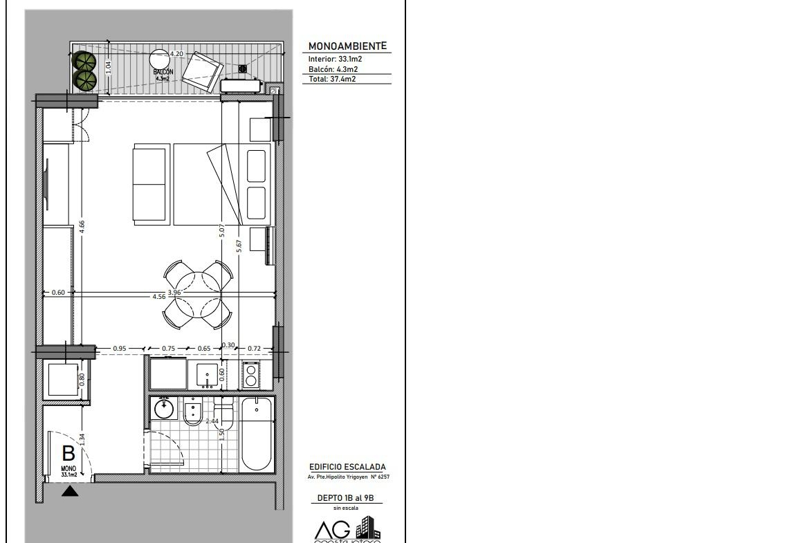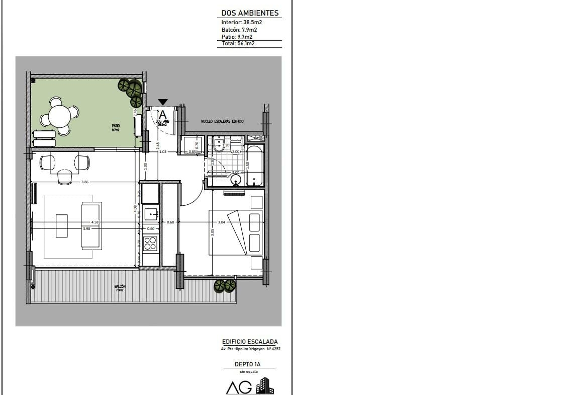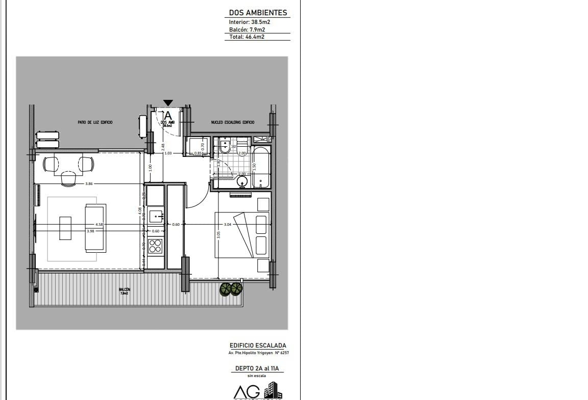 Departamentos SEMIPISOS AL FRENTE CON BALCON CORRIDO 2 AMB de 49 m2.