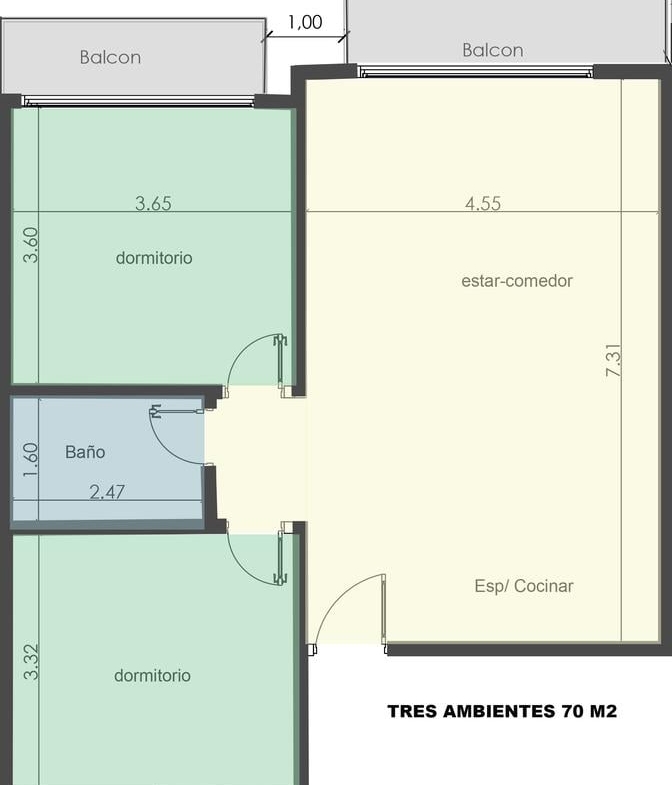 Departamentos SEMIPISOS 3 AMB de 70 m2.