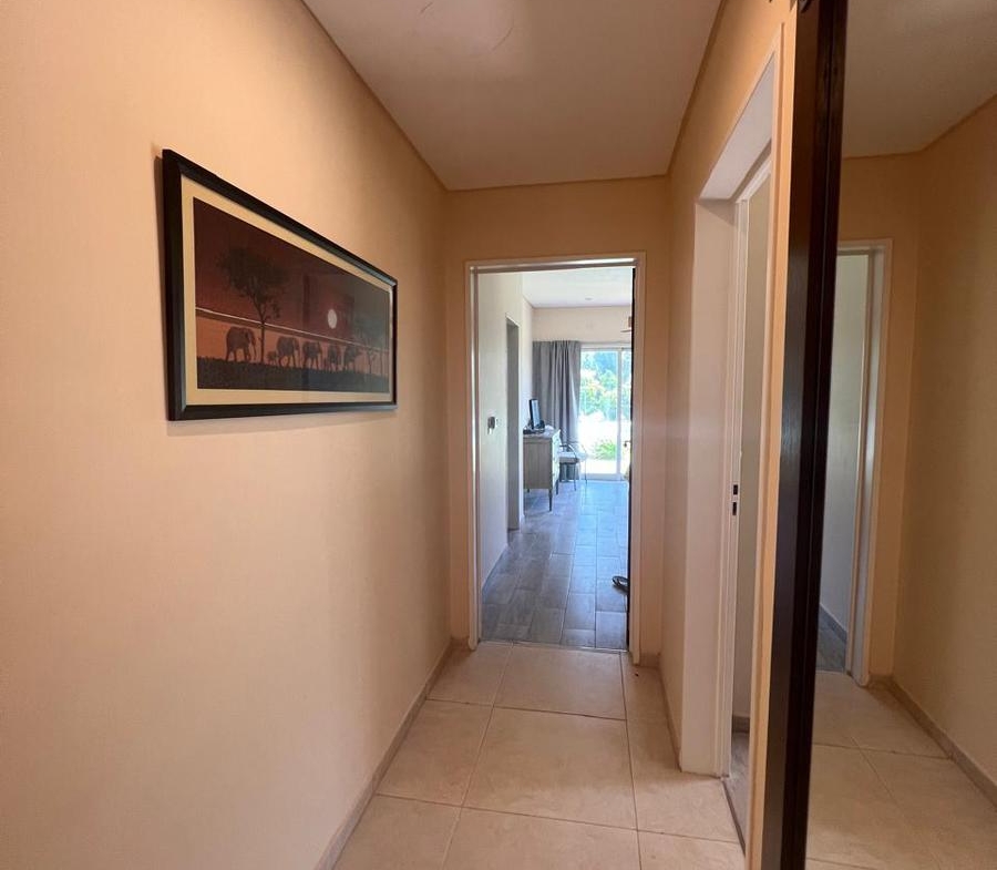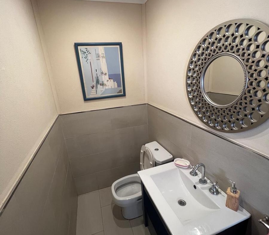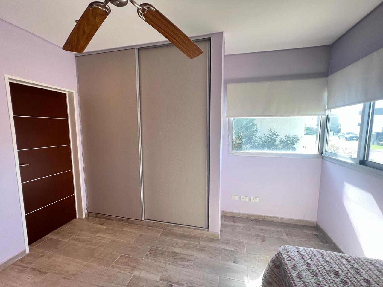 La casa cuenta con tres amplias habitaciones, la principal con salida al jardín y baño en suite.