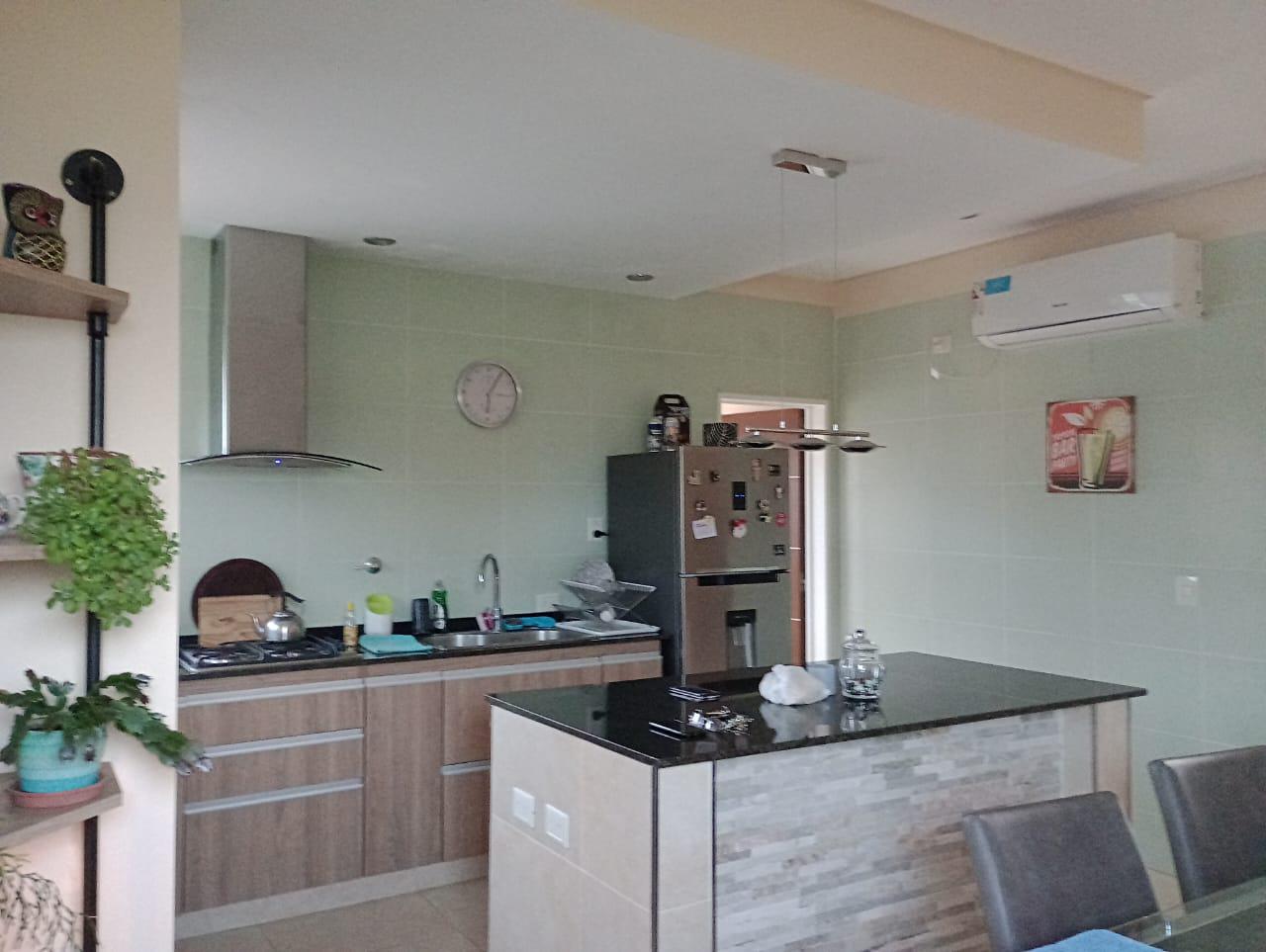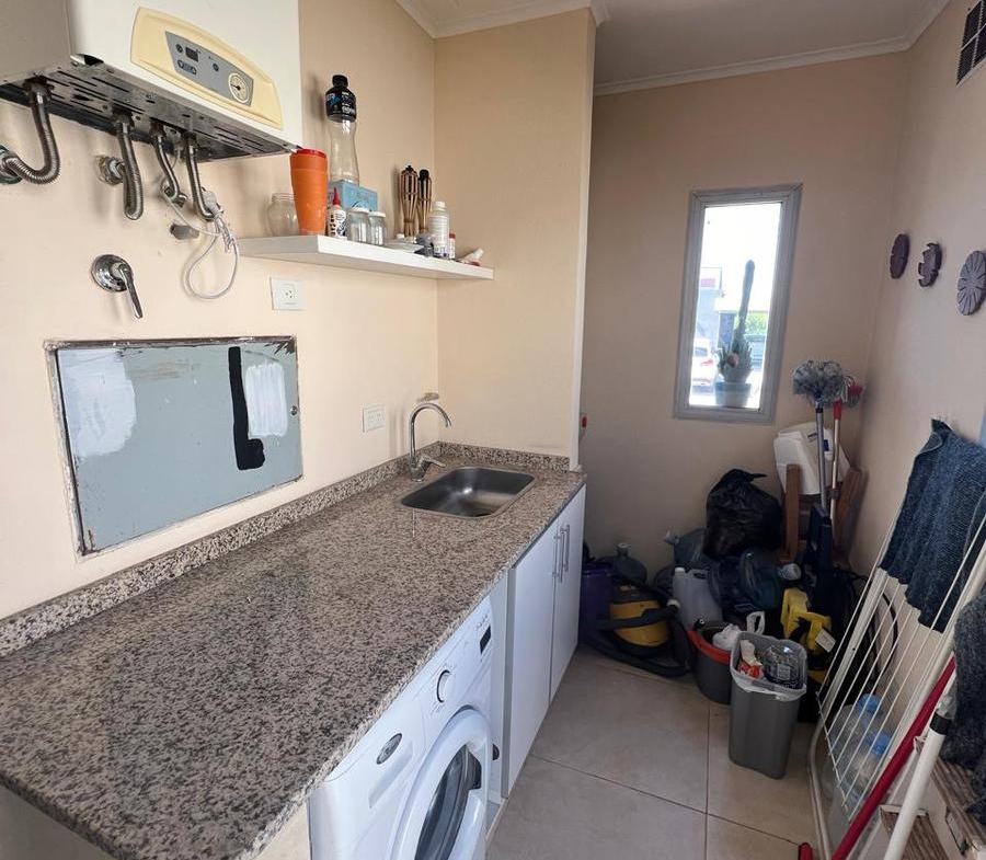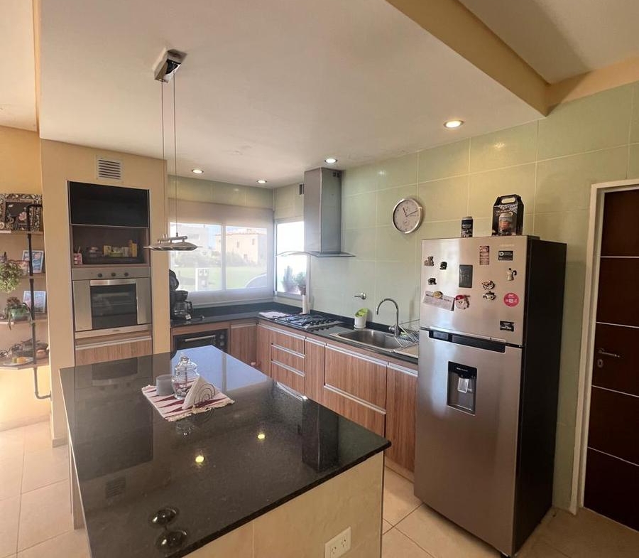 La cocina, con muebles bajo mesada y alacenas, artefacto de cocina, horno empotrado e isla, el lavadero adyacente ofrece conveniencia adicional para las tareas diarias.