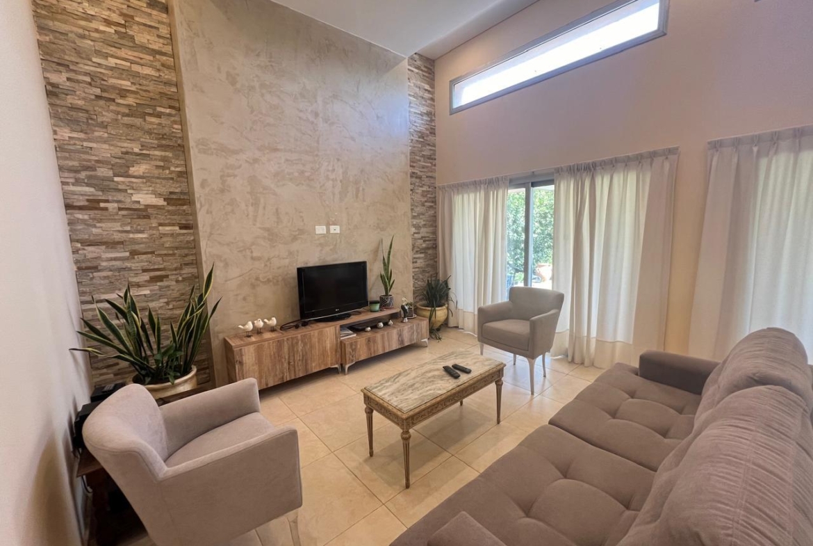 Al ingresar nos encontramos con un hall recibidor, a su lado el living, con un espacio de doble altura lo que permite el ingreso de luz natural, creando una sensación de amplitud, este diseño único permite una conexión armoniosa entre los espacios interiores y exteriores.