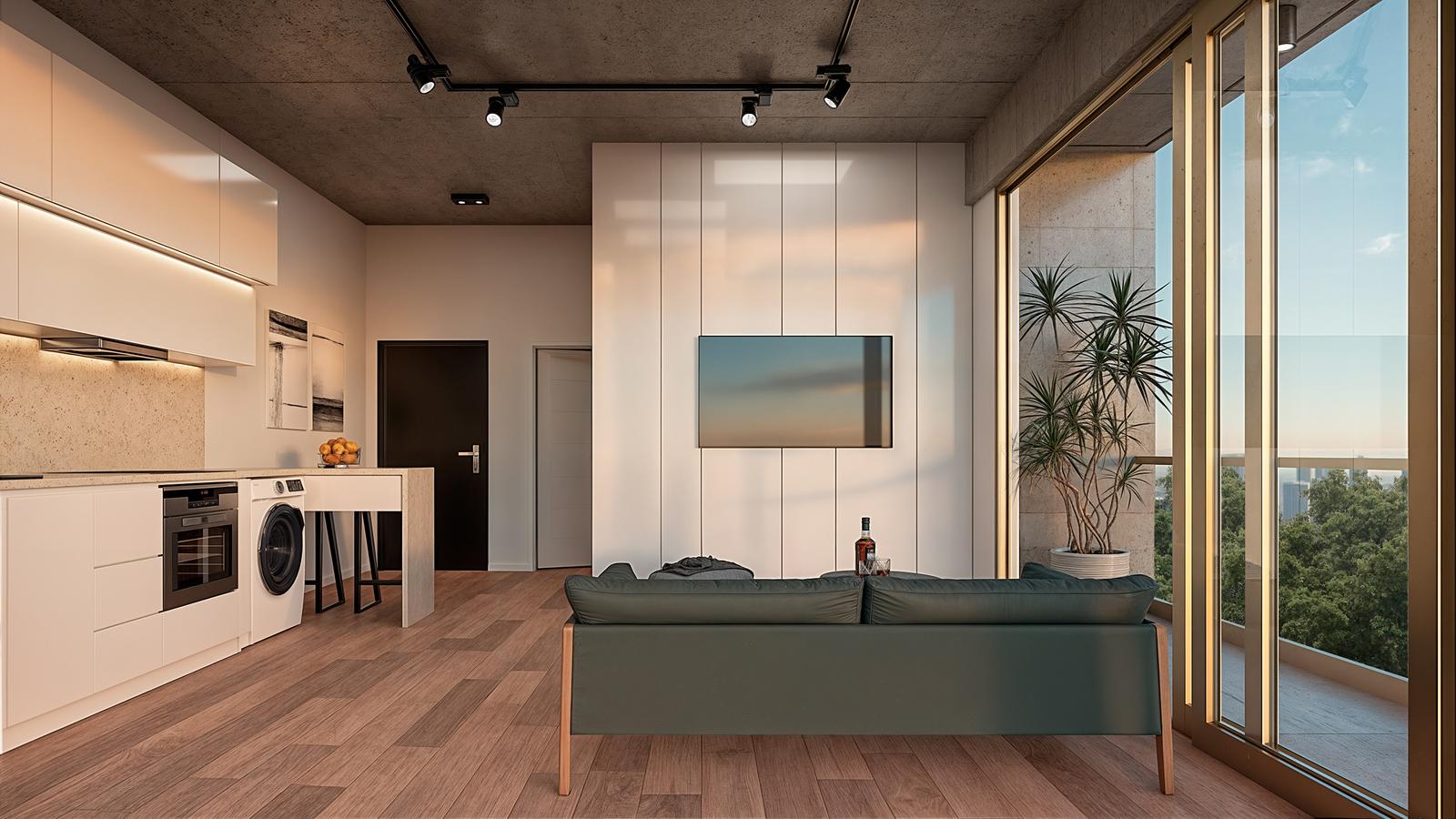*Cocina completa con muebles bajo mesada y alacenas, carpintería de primera calidad. Artefacto de cocina y horno empotrado, barra desayunadora.*Amplio balcón con barandas de acero y vidrio blindex.*Baño completo, con ventilación natural, totalmente revestido.*Habitación con placard empotrado, puertas de piso a techo.*Pisos de porcelanato en todos los ambientes.*Conexión para lavarropas.