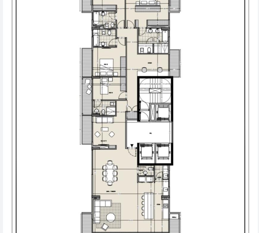 * Cinco ambientes- Piso Completo de 268M2.* Cocina: Completa con muebles bajo mesada y alacenas, carpintería de primera calidad. Incluye artefacto de cocina y horno empotrado, isla.* Lavadero: Separado de la cocina con todas las conexiones necesarias.* Habitaciones: Cuatro habitaciones, todas en suite y con balcones, la principal cuenta con box de ducha, box para inodoro y bidet, ante baño y bañera con hidromasaje.* Estudio/Oficina: Espacio especialmente diseñado.* Salón de Micro cine: Área dedicada especialmente para entretenimiento.* Baños: Baños completos totalmente revestidos y un toilette de recepción.* Terraza privada: Con solárium y parrilla de acero inoxidable, moderna, ofreciendo excelentes e inmejorables vistas panorámicas.* Pisos: Porcelanato en todos los ambientes.* Aberturas: De primera calidad con virios DVH.