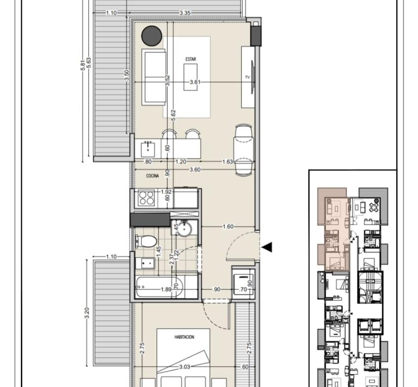 Unidades funcionales de uno, dos, tres y cuatro ambientes.