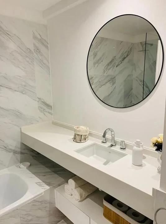 *Baño completo totalmente revestido, con accesorios y espejos, detalles en mármol.