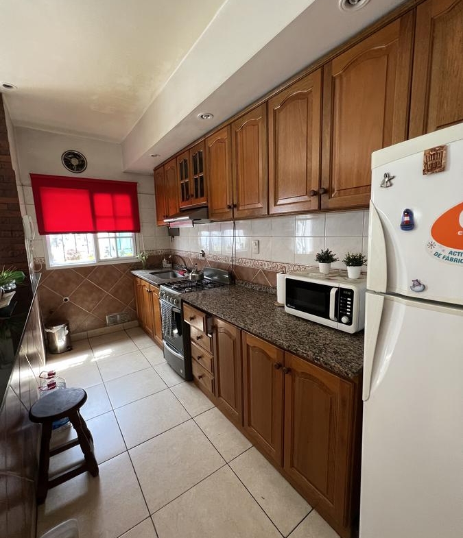 • Acceso por escalera al frente. • Amplio living-comedor luminoso con pisos cerámicos. • Calefacción por aire acondicionado frío/calor en todos los ambientes. • Cocina con barra desayunadora, mesada de granito, muebles bajo mesada y alacena, artefacto de cocina a gas. • Patio con lavadero, accesible desde el living-comedor. • Dos dormitorios al frente con placard; el dormitorio principal tiene acceso al balcón. • Baño principal completamente equipado con ducha.En el contrafrente pasando el patio, se encuentra otra habitación con servicio de luz y agua, ideal para sala de estudio o trabajo. (no tiene baño propio)