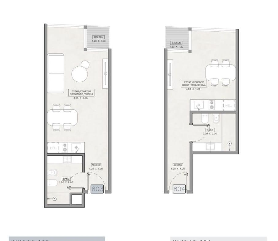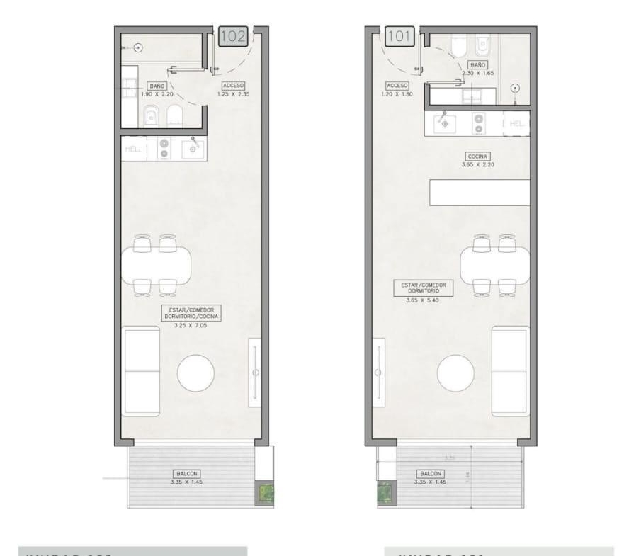 Las unidades:– Carpinterías de aluminio color negro de alta prestación con DVH color gris arquitectura– Mesadas de Silestone en baños y cocinas– Griferías mono comando FV o similar– Artefactos sanitarios línea Roca, The Gap o similar– Muebles en MDF enchapados en melamina texturada bajo y sobre mesada– Pisos multiestrato en ambientes principales, marca Patagonia Flooring o similar– Porcelanato en pisos de baños y cocina– Puertas de acceso a viviendas en MDF pintadas con cierre doble contacto según normativa de protección contra incendio categoría F30 y cerraduras biométricas