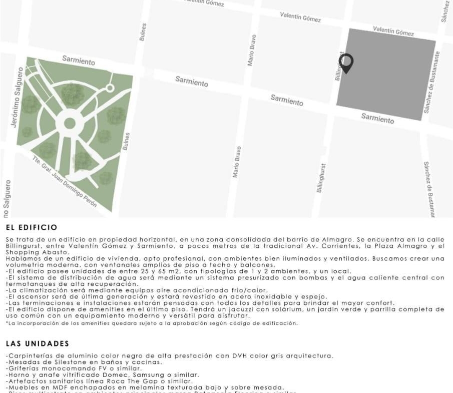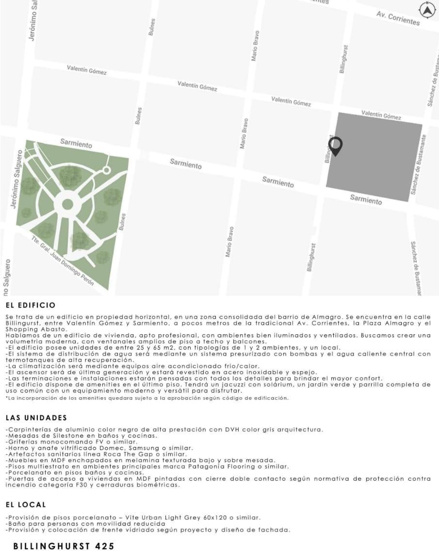 Se encuentra en la calle Billinghurst, entre Valentín Gómez y Sarmiento, a pocos metros de la reconocida Av. Corrientes, Plaza Almagro y el Shopping Abasto.