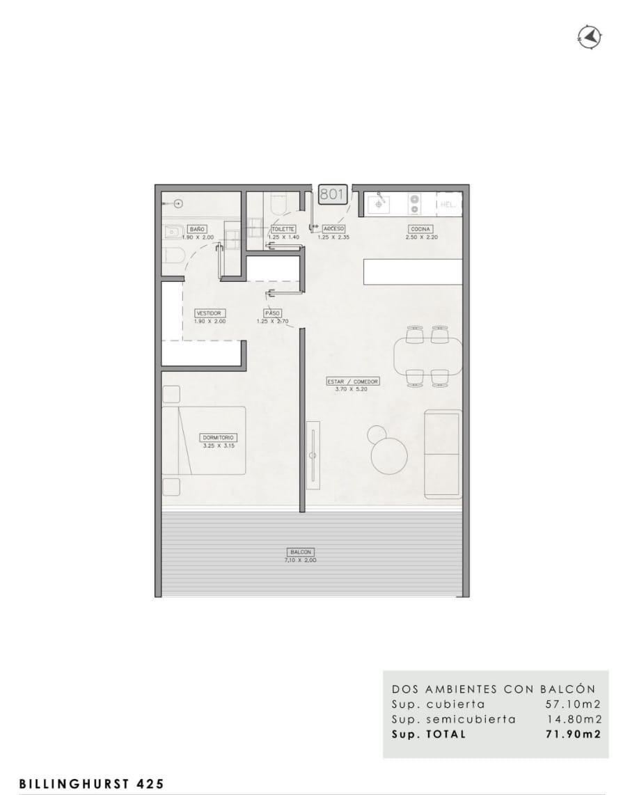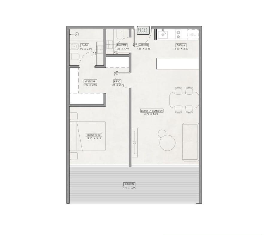 El Departamento: 39 m² totales, muy luminoso, con balcón al frente y cocina de diseño.