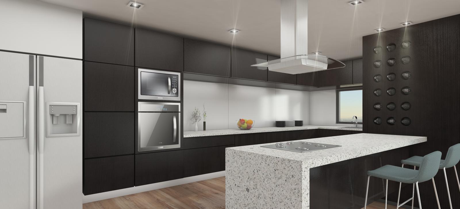 *Cocina completa, con muebles bajo mesada y alacenas, barra desayunadora, mesadas de mármol estilo “Negro Boreal”, cocina marca “Horbis” y horno empotrado.