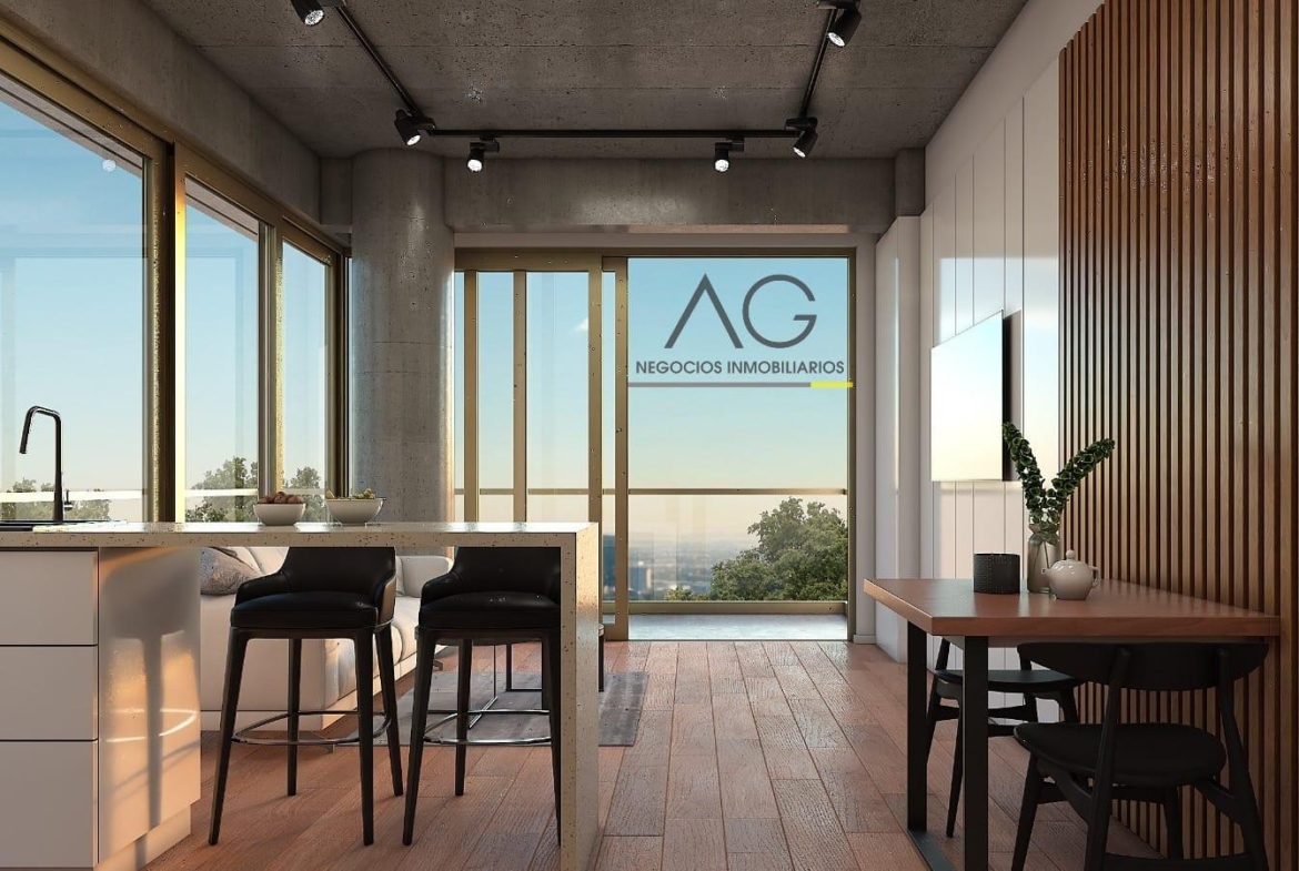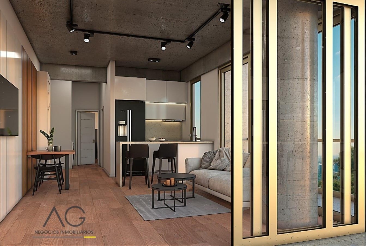 * Cocina completa con muebles bajo mesada y alacenas. Carpintería de primera calidad, cajoneras con sistema cierre suave y pistones en puertas. Mesada de mármol estilo “Negro Boreal” y barra desayunadora integrada.* Living comedor con salida al balcón principal. * Baño completo, totalmente revestido, con sanitarios Ferrum y griferías FV.* Pisos de porcelanato (consultar opciones disponibles).* Espacio para lavarropas con su respectiva conexión.* Balcón con barandas de acero y vidrio blindex.* Amplia habitación con salida al balcón y placard empotrado.