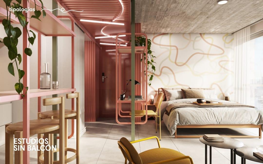 • 140 departamentos amoblados de 1 y 2 ambientes, de 24 a 51 m².