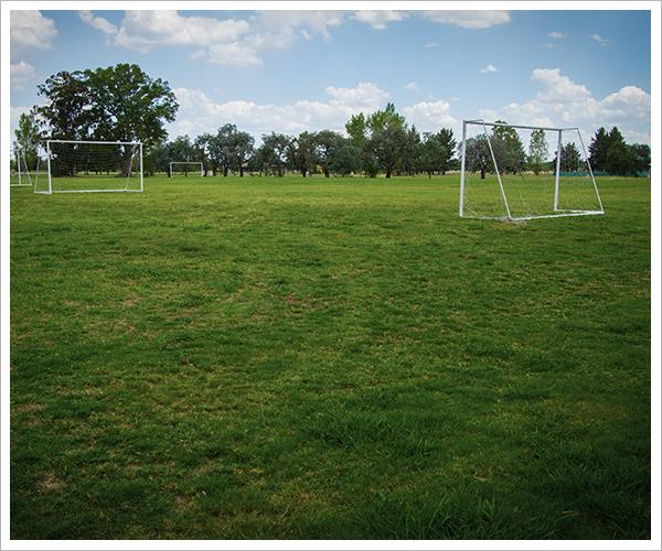 Canchas de fútbol cerca del Club House Familiar y la laguna.