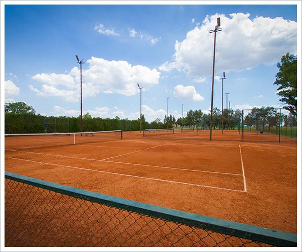 Canchas de tenis de polvo de ladrillo y cemento, a pasos del Club House.
