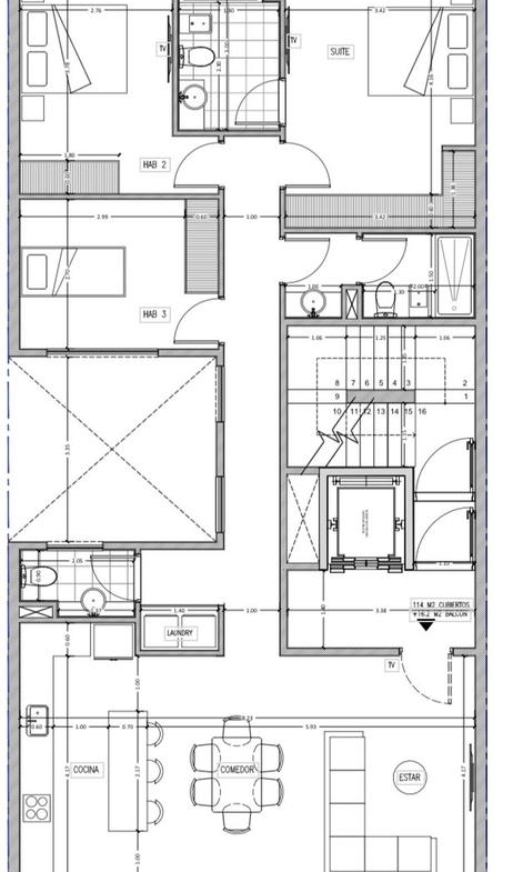 ? Características destacadas • Distribución inteligente y m² de balcones que maximizan luz natural y ventilación. • Amplio estar y comedor integrados, con salida a balcón corrido. • Dormitorios luminosos con placares de piso a techo. • Suite principal con vestidor y baño privado. • Cocina separada equipada, con espacio para lavarropas. • Amenities de primer nivel: SUM, piscina en terraza con vistas abiertas, sector de parrillas. • Calefacción por piso radiante eléctrico, DVH en todas las aberturas, pisos de porcelanato y terminaciones de diseño moderno. • Cocheras disponibles cubiertas y descubiertas.