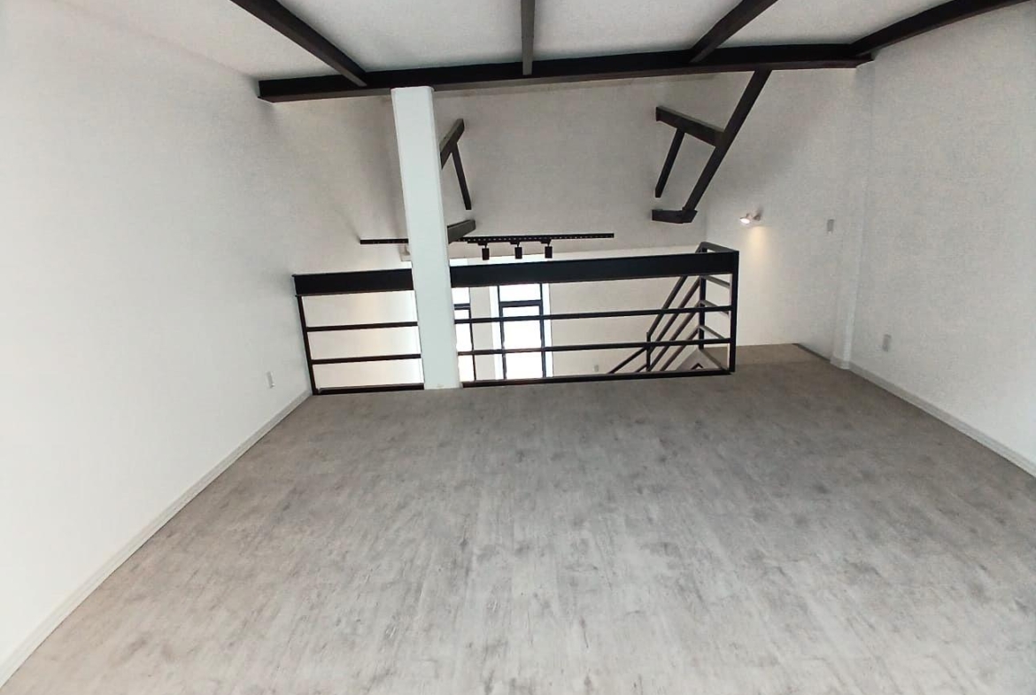 La unidad se desarrolla en dos niveles: • Planta baja: amplio ambiente con cocina integrada, muebles bajo mesada y alacenas. • Entre piso: espacio ideal para dormitorio o escritorio. • Balcón: 3 m² con vista abierta. • Baño completo: revestido a nuevo, con vanitory, espejo y ducha.