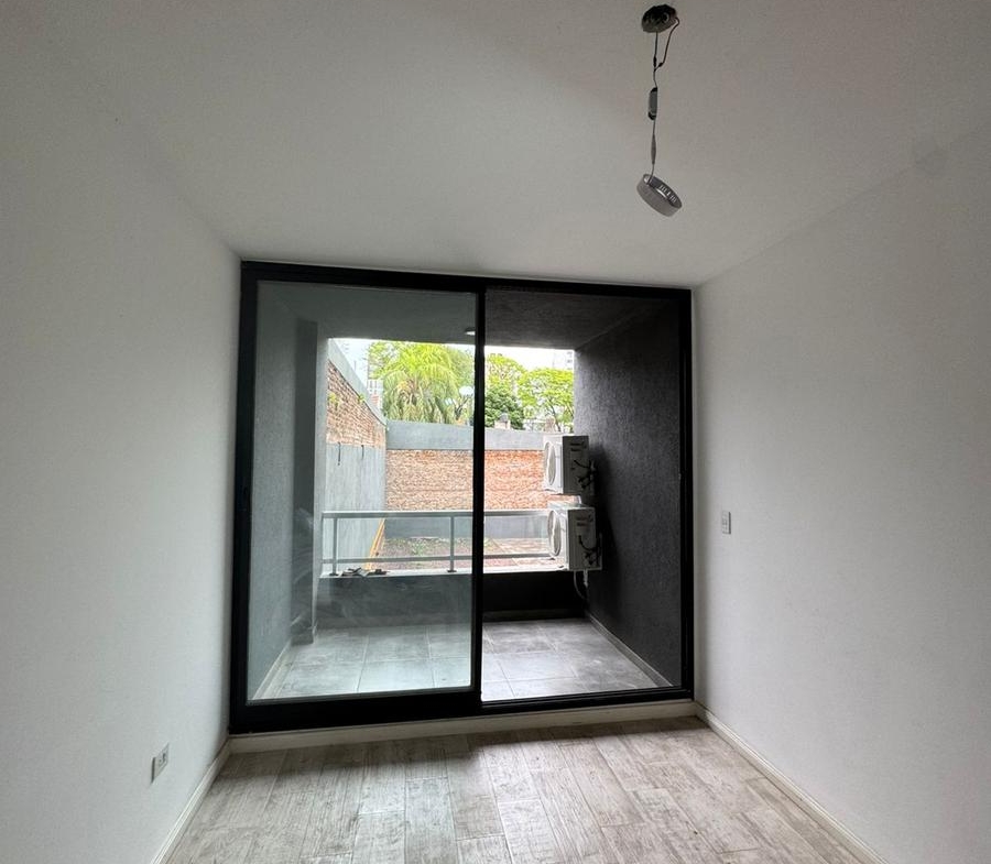 * Balcón con vista al contra frente, barandas de aluminio y vidrio blindex.