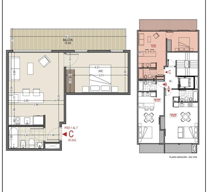 • Monoambientes al frente desde 36 m² hasta 43 m² totales.