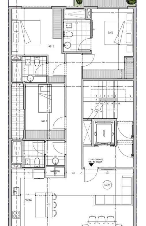 • 3 habitaciones, una de ellas principal en suite con vestidor y balcón privado. • Baño completo adicional + toilette de recepción. • Espacioso living comedor integrado con salida a un balcón corrido al frente, generando una excelente luminosidad y ventilación. • Cocina integrada de diseño, con isla central, muebles bajo mesada y alacenas, ideal para quienes disfrutan cocinar y compartir. • Espacio independiente de laundry, pensado para mantener la organización del hogar.