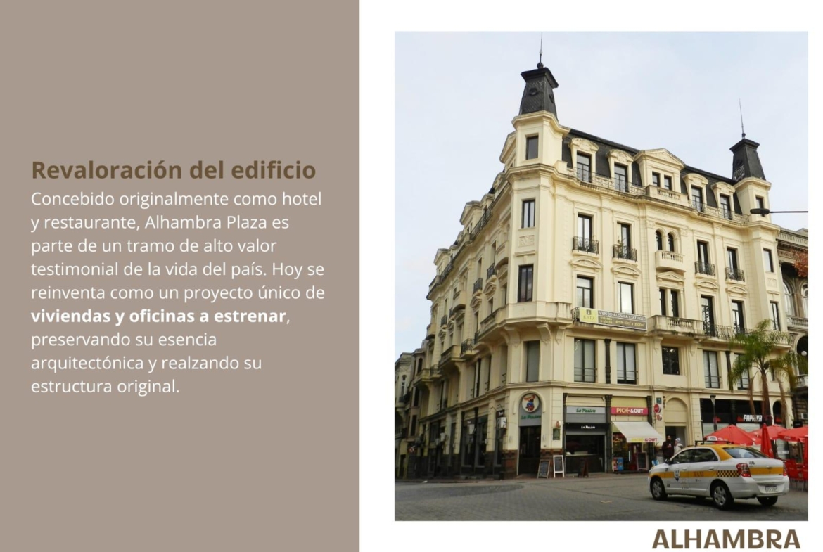 Alhambra Plaza es un edificio emblemático que forma parte de un tramo de alto valor testimonial en la historia del país. Concebido originalmente como hotel y restaurante, hoy se revaloriza y resignifica a través de un proyecto arquitectónico único que combina patrimonio, diseño y funcionalidad contemporánea.