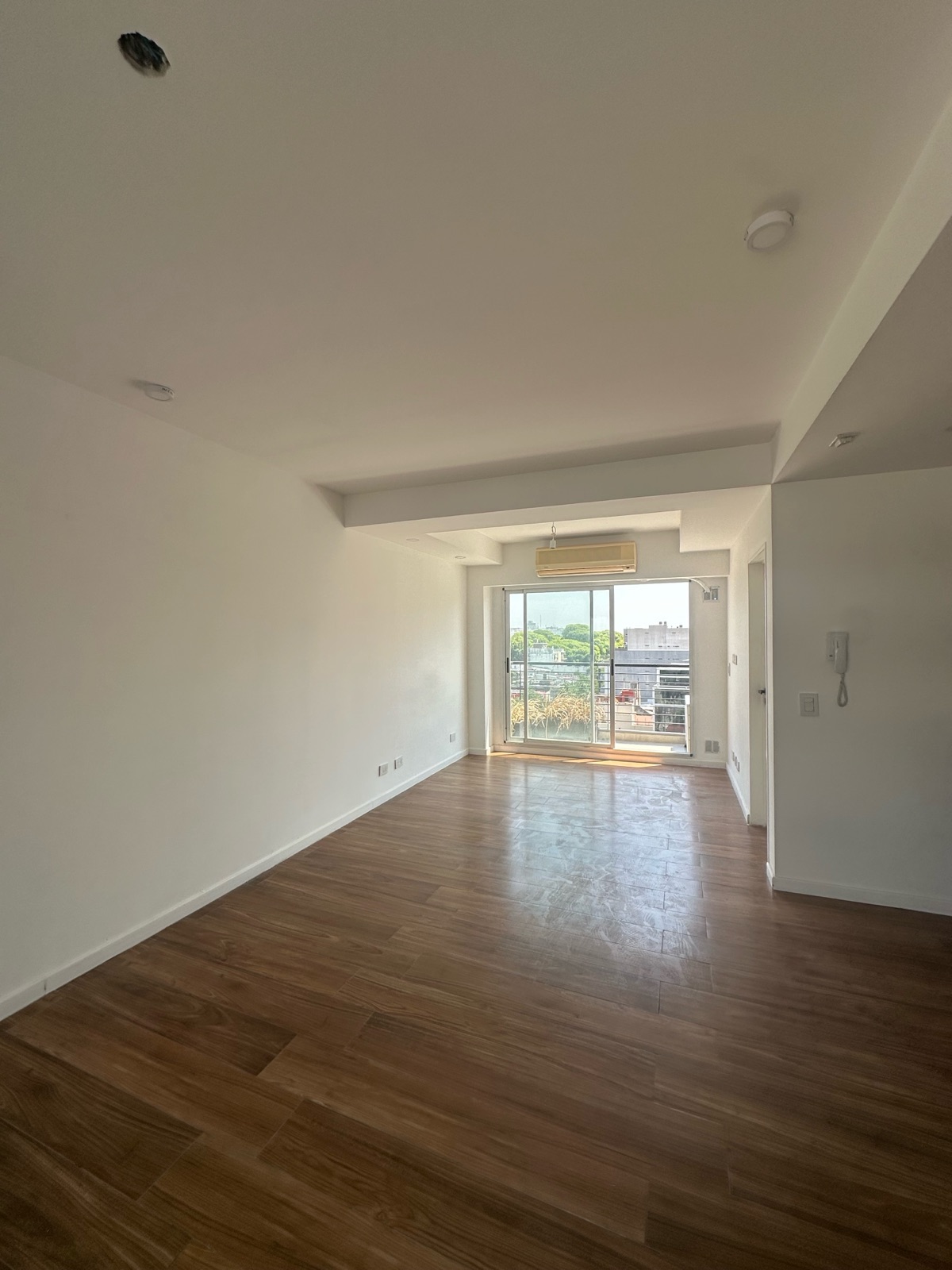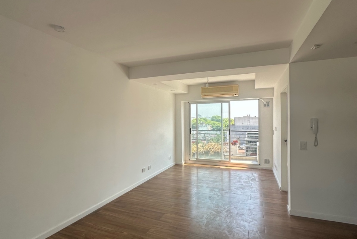 Ambiente: Piso de porcelanato imitación madera y amplias aberturas de aluminio Línea Módena que aseguran excelente aislamiento y ventilación.