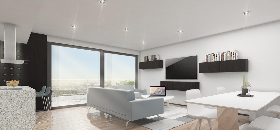 *Living comedor con inmejorable vista al frente, gracias a los 10 metros lineales de fachada.